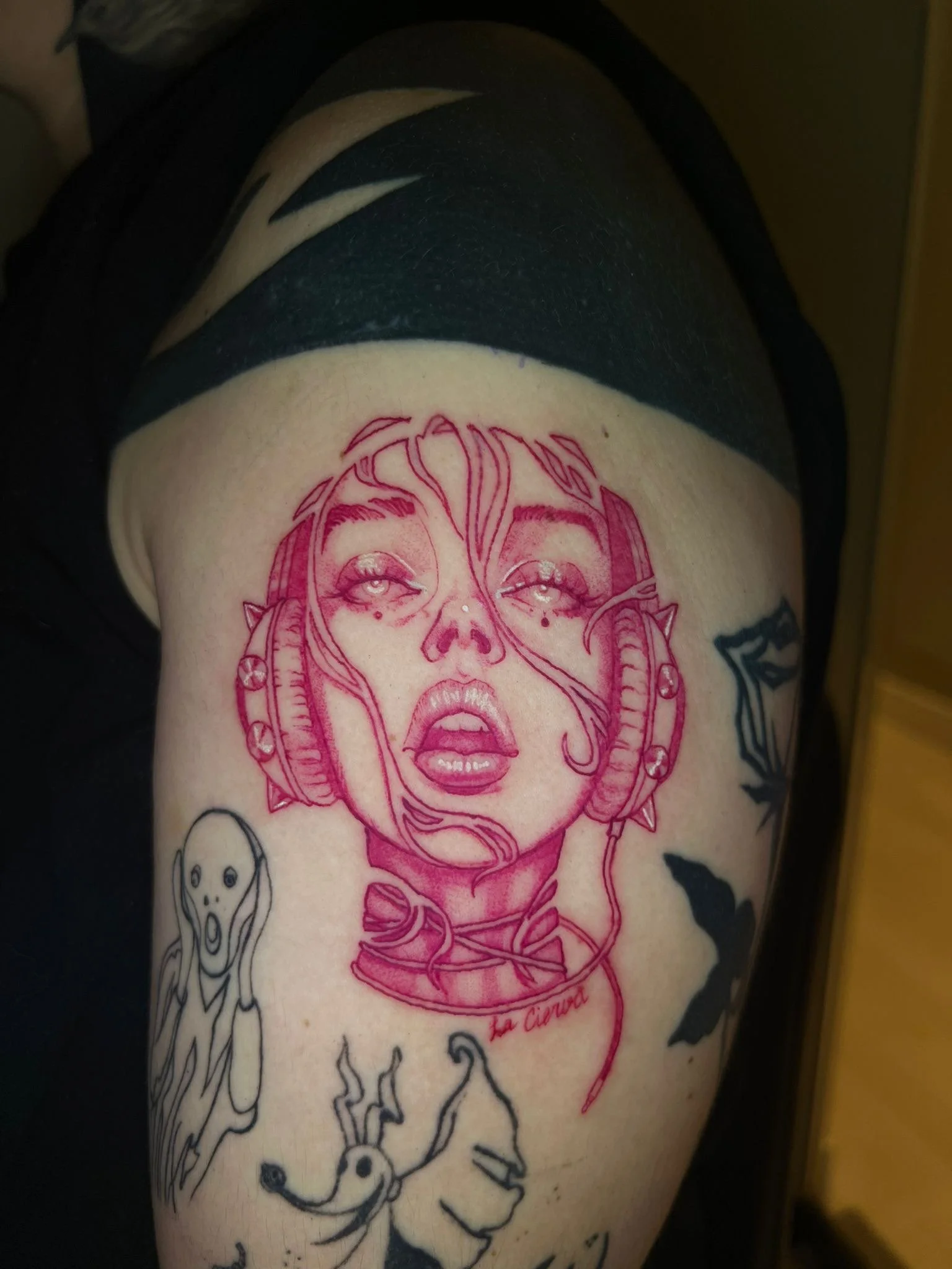 Marta “La Cierva” Marta, better known as “La Cierva”, illustrator and self taught tattoo artist since 2020. Her style variates between illustrative realism, anime and color. Book Now